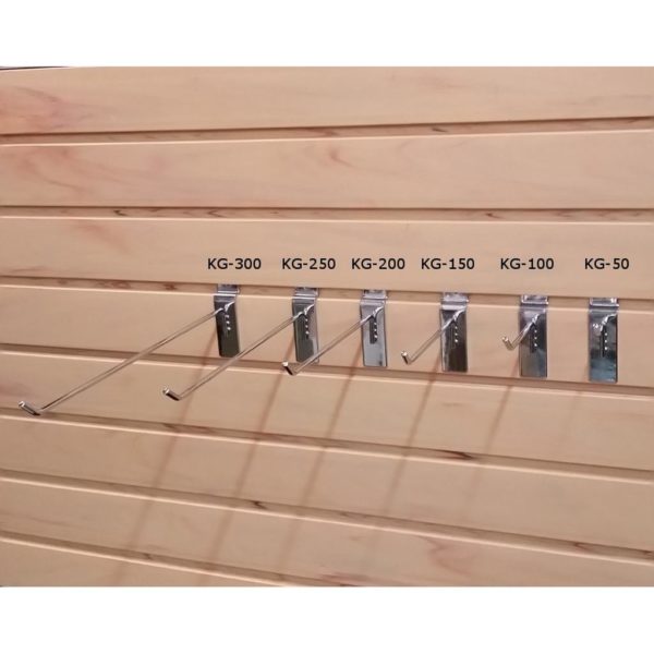 Μεταλλικοί γάντζοι για πάνελ σε έξι διαφορετικά μήκη. Απαραίτητο αξεσουάρ για οποιοδήποτε κατάστημα διαθέτει πάνελ.