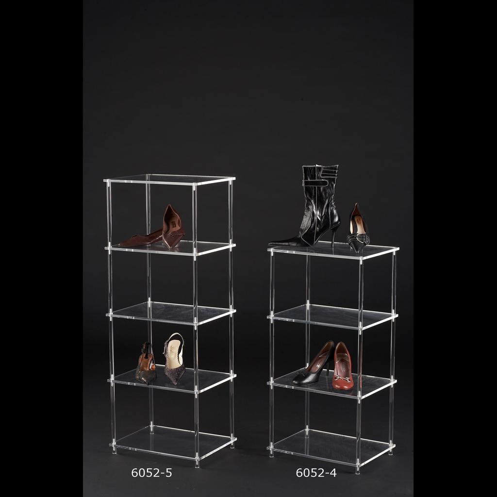 Συναρμολογούμενες πλέξιγκλας ραφιέρες με ράφια 40x30cm. Διαθέσιμες με 2, 3, 4, 5, 6 και 7 ράφια. Είναι κατάλληλες για κάθε είδους βιτρίνα ή και εσωτερικό χώρο καταστήματος